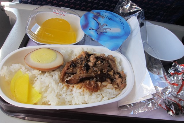 復興航空的飛機餐真的很不錯,雖然是簡單的香菇肉燥飯,但是很香,本來中午被怕我餓死的老媽餵食過還沒餓,但還是忍不住把肉燥部份嗑光(會肥不是沒有原因的OTL)