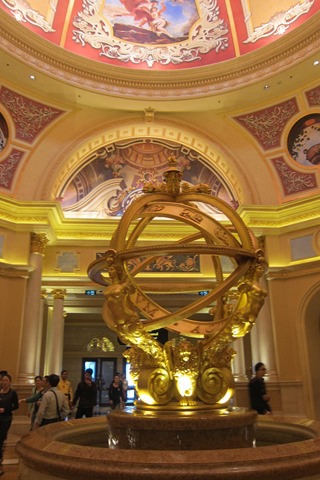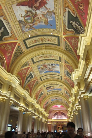 幸好時間也算充裕可以讓我亂搞,畢竟今天只有晚餐行程,所以我就跟著車上的客人一起在威尼斯人下車,看到了傳說中的山寨威尼斯風光,還蠻妙的,走進大廳拍個兩張照,上個廁所以示我到此一遊(什麼心態啊!)就跑去櫃台問怎麼搭車去港澳碼頭(省錢啊!)