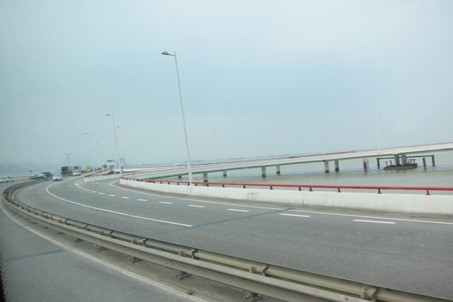 搭上免費接駁車,看到了澳門黃黃的海(真是不漂亮,難怪好像很少人稱讚過澳門海景XD),跨海來到了澳門本島的外港碼頭,本來有點想進去拍照,因為外觀跟地下道看起來有點破舊,想說就算了,直接找了的士站搭計程車去望廈迎賓館跟主席他們會合比較乾脆。