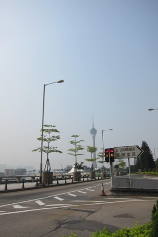 到站下車後,就看到了粉紅色的葡萄牙建築,還有這次根本沒預計要去的旅遊塔,澳門真的很小XDDDD