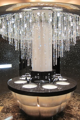 走進昨天一直看到的奇妙形狀建築物,裡面金光閃閃,非常有賭場暴發戶的氣息,連廁所都掛著水晶燈,超歡樂的。