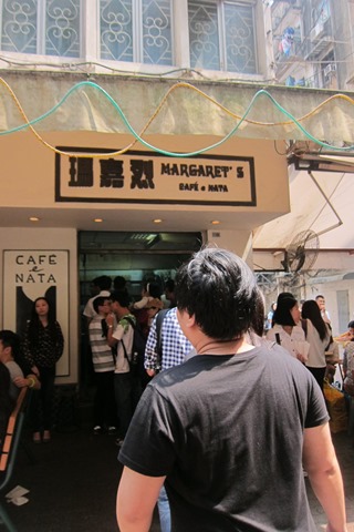 吃飽喝足後,要先去吃甜點,所以就來到了新葡京旁邊小巷子裡面的瑪嘉烈,一人買了一個葡式蛋塔。